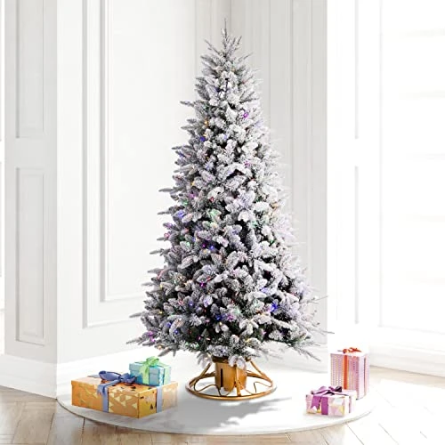 - Durable plastic adjustable tree stand for trees up to 120 lbs and 2200 incandescent lights.