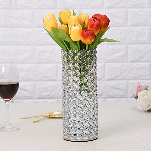 - ▶ Gorgeous Decoration:Placing this precious crystal cylinder vase atop decorative mirrors and chandelier centerpiece risers. The shiny faceted crystal clear beads will shine like crazy once you throw some lights on this deluxe accessory,it will glam your wedding tables or coffee table decorative centerpiece to create a bedazzling spectacle for your guests.