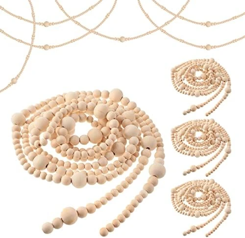 - Increase Farmhouse Touch: the Christmas wood bead garlands can be hung on tiered trays, round flower pots, candle holders, wall, door handle, mantel, tree, fireplace and more, so your home will be full of farmhouse atmosphere